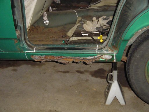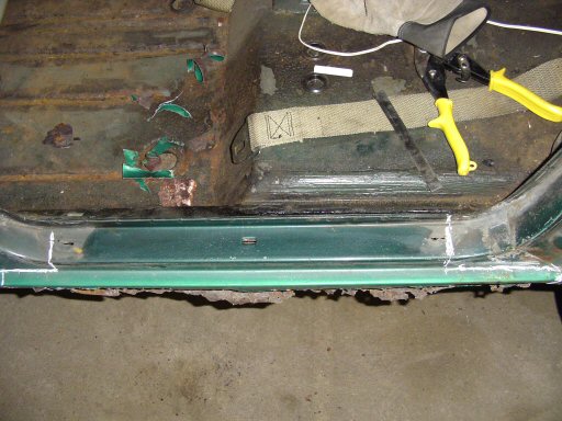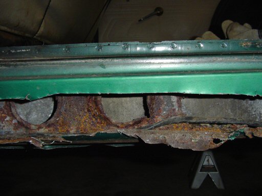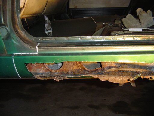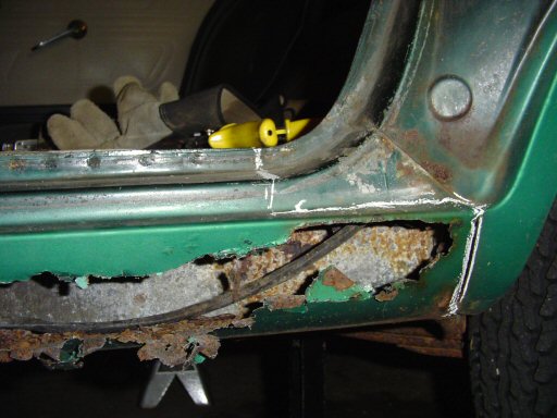 outer rocker in this area. Also, the metal was rusted enough that I was able