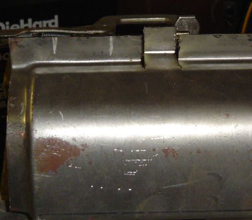 After I made the cuts, the next step was to cut some small filler triangles to form the sides of the stepped area. That part was a royal pain since the pieces were so small but the next picture shows what is looks like after they were welded in place and some grinding was done.