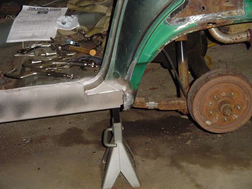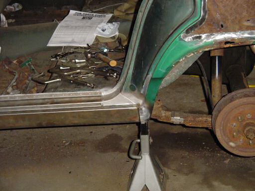 on was to un-roll the bottom of the quarter panel. The part I rolled back on