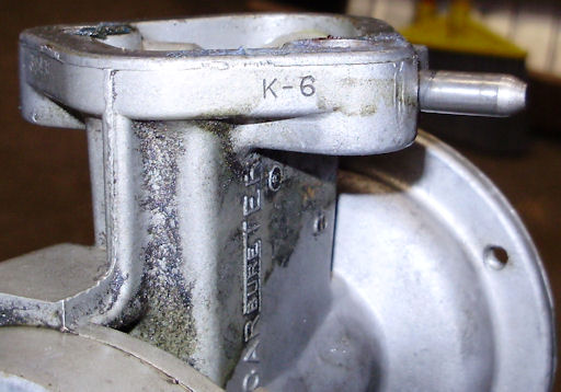 Carter pumps, this is located on the top of the left mounting ear as seen