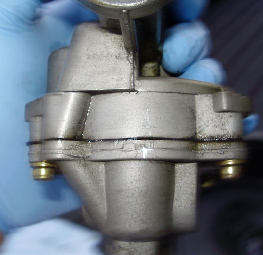 the pump. In this case, it is caused by a deformed fuel bowl due to over