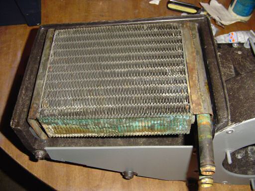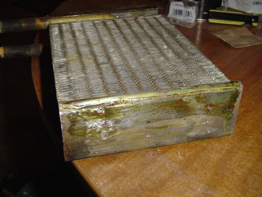 the end of the heater core.