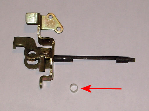 Here is an example of why you should remove the throttle shaft. On this carburetor, a plastic bushing (red arrow) was fitted to it to fix a sloppy throttle shaft.