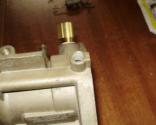 Back to American Restoration Index Holley Model 1931 RebuildCarburetor AssemblyWarning! Keep in mind that you are re-assembling a carburetor and not tightening the lug nuts on a semi. All screws should be tightened snuggly but too much force can strip threads and bend or break parts. If you removed the elbow for the vacuum advance line, apply liquid Teflon sealer to the threads of the elbow and re-install. Tighten until it is just snug and pointing towards the front of the carburetor at roughly a 45 degree angle.