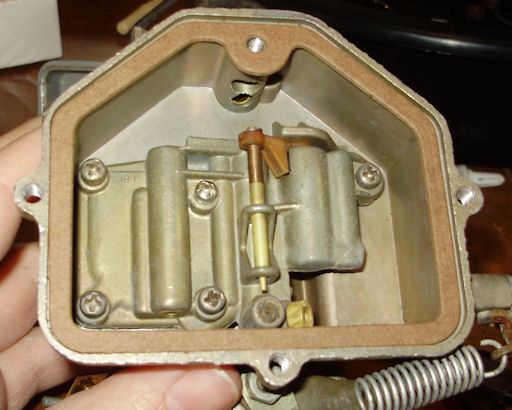Back to American Restoration Index Holley Model 1931 RebuildCarburetor Assembly (cont.)Install a new bowl gasket and then install the fuel bowl. Tighten the screws evenly in a cross pattern. Note: The top hole is offset to the right so the gasket will only fit one way.