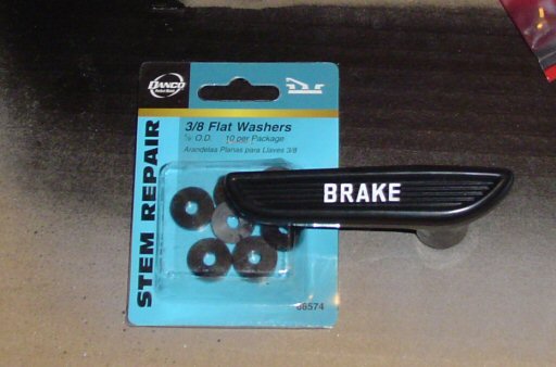 Rambler American RestorationReplacing The Parking Brake Lever Handle - Take 2Back to American Restoration Index August 28, 2003 A few years ago, I replaced the missing parking brake handle on my American with one of the metal reproductions. I later updated that page to indicate that the handle didn't hold up well. While I was working on my cowl last year and looking for a supplier for the proper caulk for the windshield on the car, I discovered that early Mustang's use a similar handle. I finally decided to try one out (it was about $10 for the part and about $9 for shipping) and I wish I knew about these a long time ago! The part is different but it does fit and it looks close enough that most people probably would not notice it's wrong for the car. I purchased my handle from Mustangs Plus (http://www.mustangsplus.com) and it's part number 03011, which is for 1964½ through 1966 Mustangs. I did notice one functional difference that I'll have to fix but it shouldn't be a big deal. That difference is the roll pin goes into the bottom on American's but it goes in on the side on Mustang's. Here's pictures of both handles (note: the American handle is from my parts car and is typical of the condition these are in after 30+ years of use):