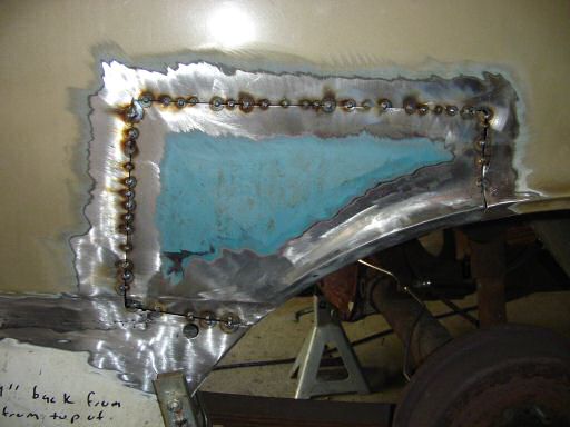 Once the I got the patch tacked in (the tacks are mostly between a quarter