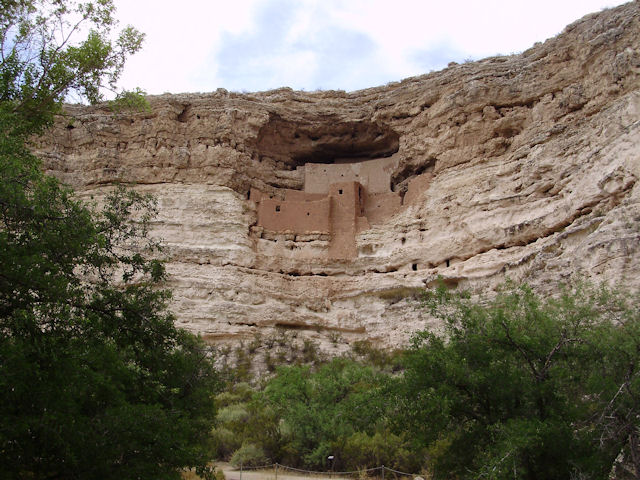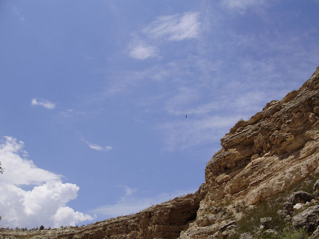 Montezuma's CastleAhhh, the ignorance of the first Europeans to explore the American south west... Montezuma's Castle has nothing to do with Montezuma (he was from Mexico and never went this far north) and it isn't a castle but it is pretty cool. Montezuma's Castle is really a cliff dwelling built by native Americans. It was abandoned about 600 years ago (along with a lot of other cliff dwellings) but nobody really knows why. This first picture was taken just outside of the visitors center. There were a couple of large birds circling over the "castle". I have a lot of pictures trying to get all of them at once but this is the best I ended up taking.