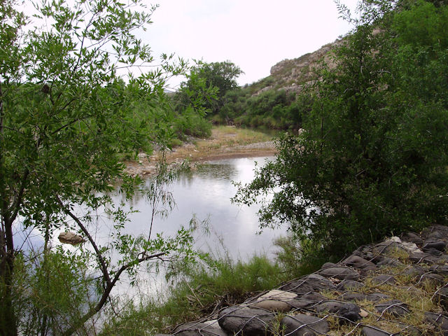 There's a creek very close to the dwellings which is likely why this areas was settled. You can also see a section of wall that was built for flood prevention,