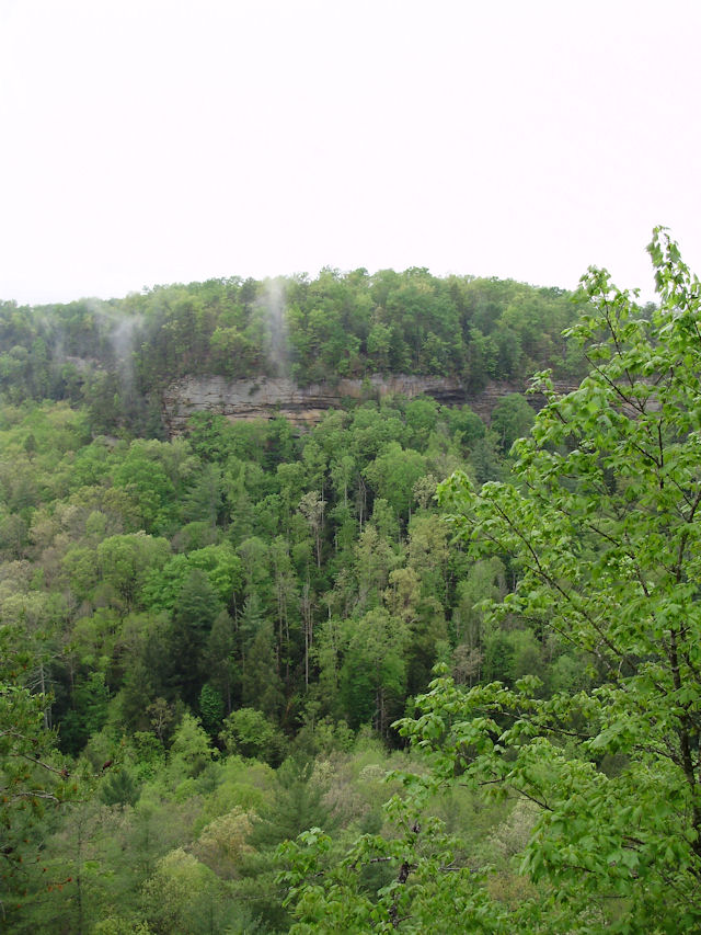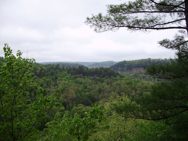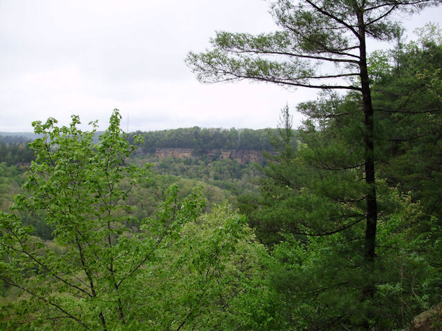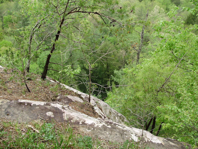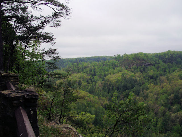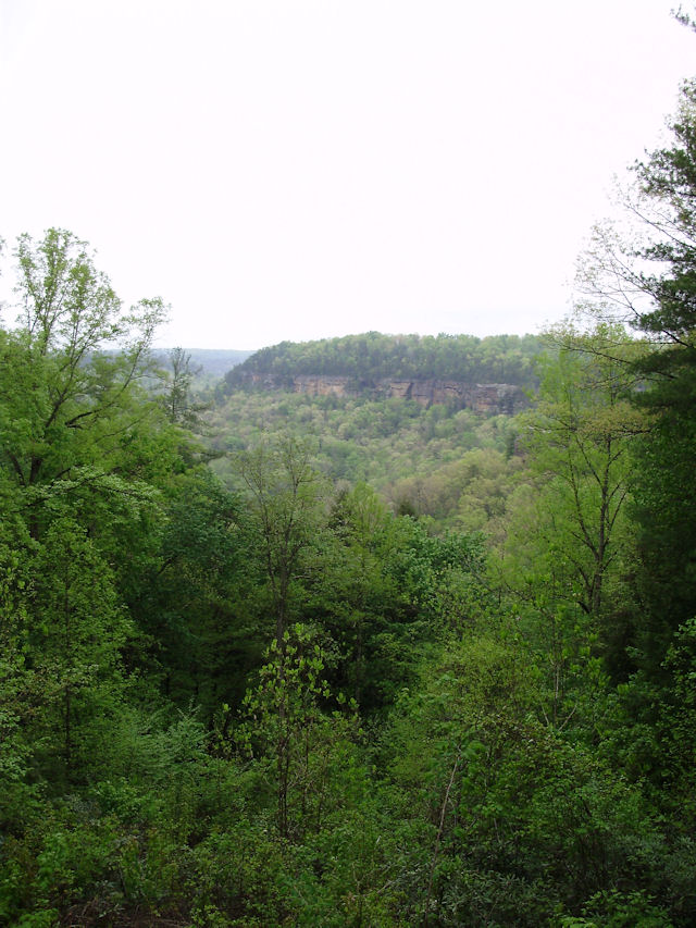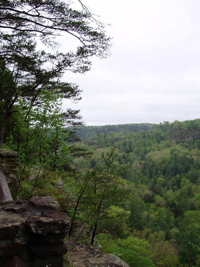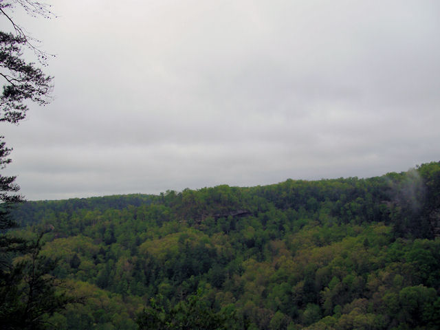 Photo Gallery Back to Red River Gorge Trip Index Devil's Canyon - April 2012Driving along KY-715 (this runs off of KY-77) offers many places to stop and take in the gorge. Short of standing on top of one of the arches, the Devil's Canyon scenic overview is one of the better places to stop and get a good view of the area. There were also several hawks circling the cliffs in this area. My digital camera was too slow to get a picture of any of them but it was enjoyable to just watch them circle overhead. Last Updated 04/28/12 07:06:54 AM |