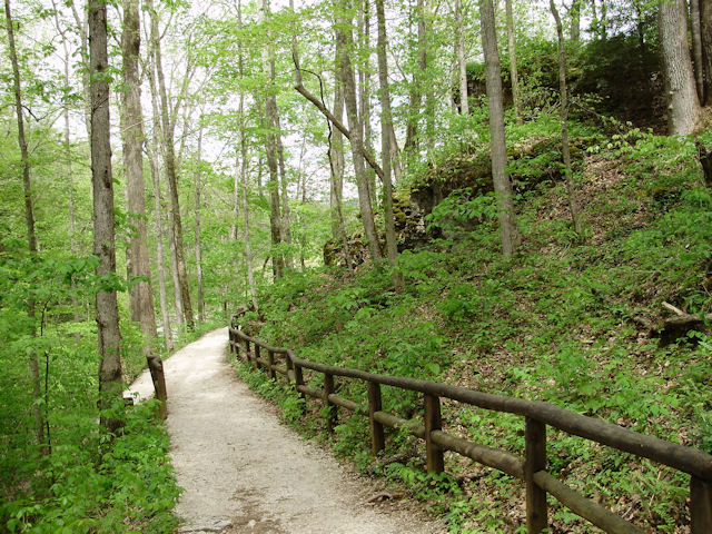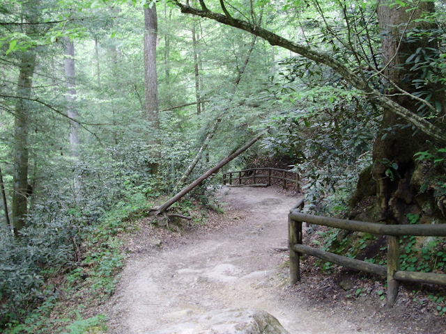 Photo Gallery Back to Red River Gorge Trip Index Natural Bridge - April 2012My first hike was to see Natural Bridge arch. This arch is located behind and about 300 feet above the lodge at Natural Bridge State Resort Park. I took the original trail to the arch. The trail is about 3/4 of a mile long and is fairly steep in some places (mostly near the top). This is an old trail built specifically for tourism so there are steps in some places, it is fairly level from side to side, and there are benches located along the trail so you can sit if you need to. There is also a sky lift located in the park if hiking up hill isn't your thing but you'll miss out on a lot of nice scenery. There were not many people around the day I hiked this trail but there were a number of people who seemed to be racing to the top instead of taking their time and enjoying the scenery. Last Updated 04/28/12 07:09:59 AM |