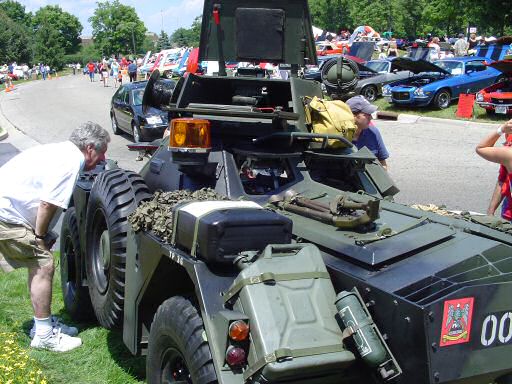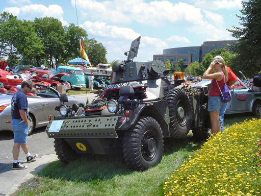 2005 Lem Immke ShowPage 1 | Page 2 | Page 3 | Page 4 | Page 5 | Page 6 | Page 7 | Page 8 | Page 9 | Page 10 | Page 11 This page has pictures of a 1960 Daimler Ferret. One of two vehicles I saw at the show with a machine gun on it. FWIW, the pictures don't really show it, but this thing was murder on the grass in front of the hotel. If you don't want couple inch deep ruts, I wouldn't recommend parking one of these beasts in your lawn.