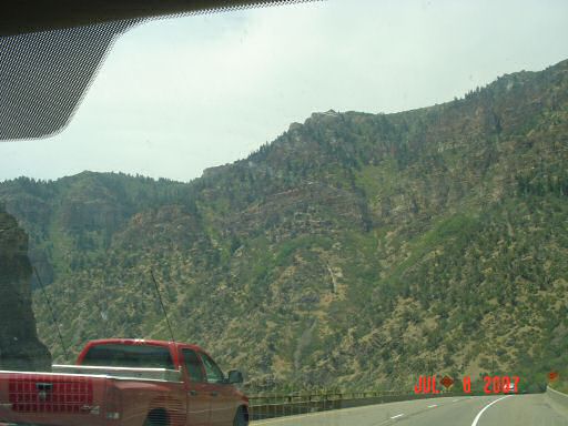 Here we are after the tunnel. Once you cross the Rockies, the scenery changes quite a bit. It changes from low scrubby trees to pine forests. I-70 runs through Vail (we were east of Vail when this was taken).