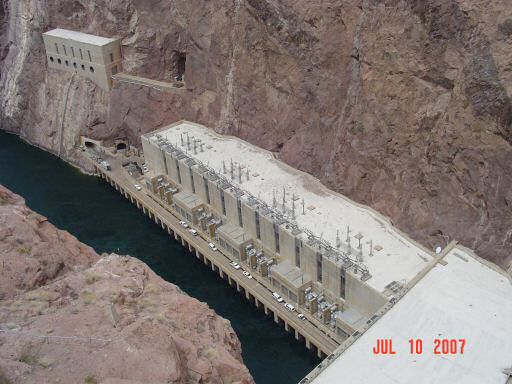 Here is the Nevada generator room. The tour took us into it. The building in the upper left is used for flood control. Those doors are opened in the spring to drain excess water from Lake Mead due to snow melt. If you do some searching, you can find some spectacular pictures of them in operation.