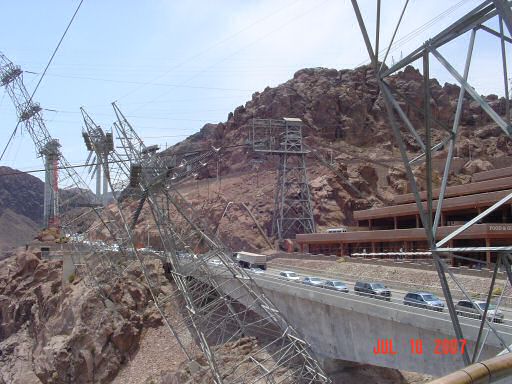 Here are some power line towers on the Nevada side. The vertical tower is one of the cranes used during construction. It's the only one remaining.