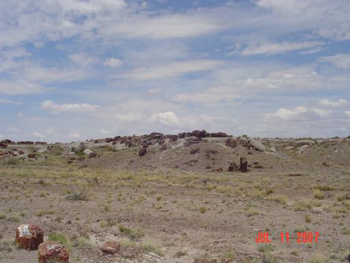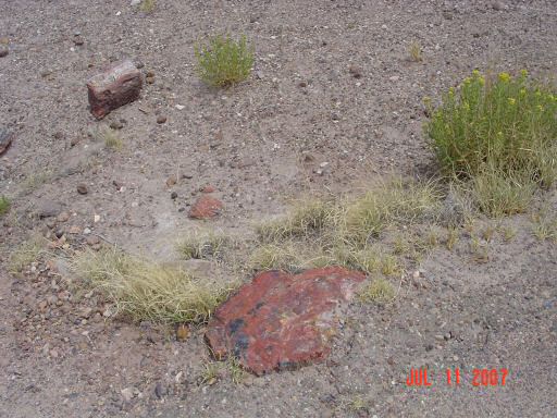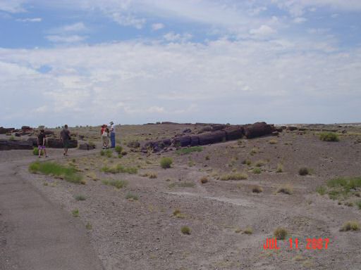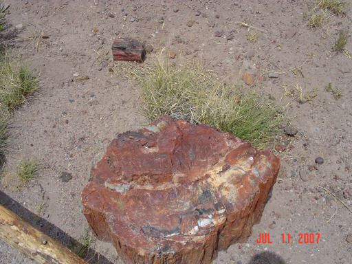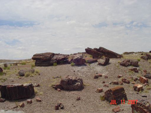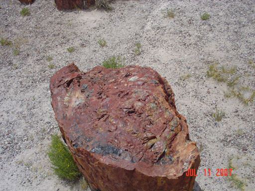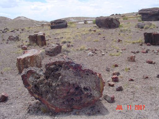 Petrified Forest and Painted DesertI don't know about you, but when I think Arizona, "swamp" doesn't usually come to mind. 225 million years ago, however, things were a bit different. At that time, northern Arizona was a swap. But one day, while the swamp was busy being a swamp and not bothering anyone else, a big storm came along and washed a large deposit of trees into it. Those trees sunk and over time, the plant fibers were replaced with minerals in the swamp along with minerals from the volcanic eruptions that were taking place. Eventually, the swamp dried up and the area was covered with sandstone. Over time, the sandstone eroded away and started exposing the now fossilized (or petrified) wood. Petrified wood is not exactly rare (it's been found everywhere people have looked for it). What makes the Petrified Forest so special is the sheer quantity of it on one place. It is literally everywhere you look for miles and miles. Also, the wood isn't the typical yellow or tan we're accustomed to. Instead, it is mostly red with yellows, greens, blues, and black mixed in. Some of the wood is almost white and a very small percentage of it still has visible growth rings in it. The following pictures were taken at the welcome center and are from the giant log display. This display is a path that takes you among massive logs, some of which appear to have been felled, cut up, and left, surrounded by a sea of smaller chunks of wood.