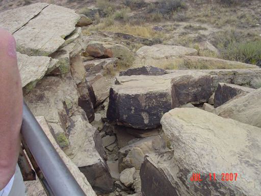 Petrified Forest and Painted DesertThe painted desert gets its name from the brightly colored layers of red sandstone mixed in with layers of gray on a backdrop of light green desert brush. After endless miles of barren desert, this is quite a site to behold. This area was also settled by several different native tribes over the centuries. One of those tribes, the Puerco Pueblo (ca. 1200 - 1300 AD), left a series of pictographs. The purpose of many of them are not known but several have been found to correspond with seasonal events such as the solstices and equinoxes.